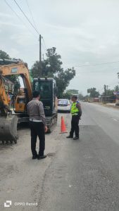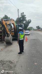 ”Kami melakukan patroli rutin menggunakan kendaraan dinas di sepanjang jalan lintas kabupaten untuk memantau titik-titik rawan. Fokus kami hari ini adalah memastikan pengerjaan proyek di Desa Gajah tidak menghambat mobilitas masyarakat,” ujar AKP Simon di lokasi kegiatan.