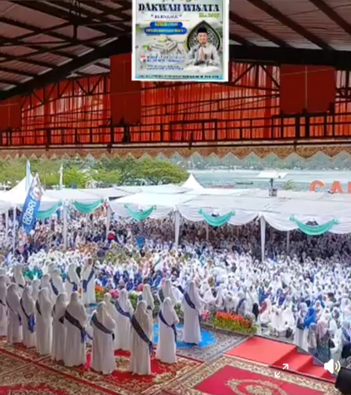 Pantai Carocok yang menjadi lokasi kegiatan, tampak dipenuhi oleh jamaah dan pengunjung yang antusias mengikuti rangkaian acara dakwah serta menikmati keindahan alam laut dan pesisir.