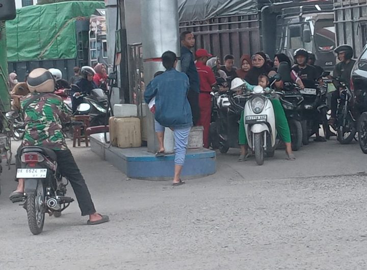 Antrian panjang sepeda motor dan mobil roda 4 kembali terjadi di SPBU 14-121-254 Desa Bangun Sari, Kecamatan...