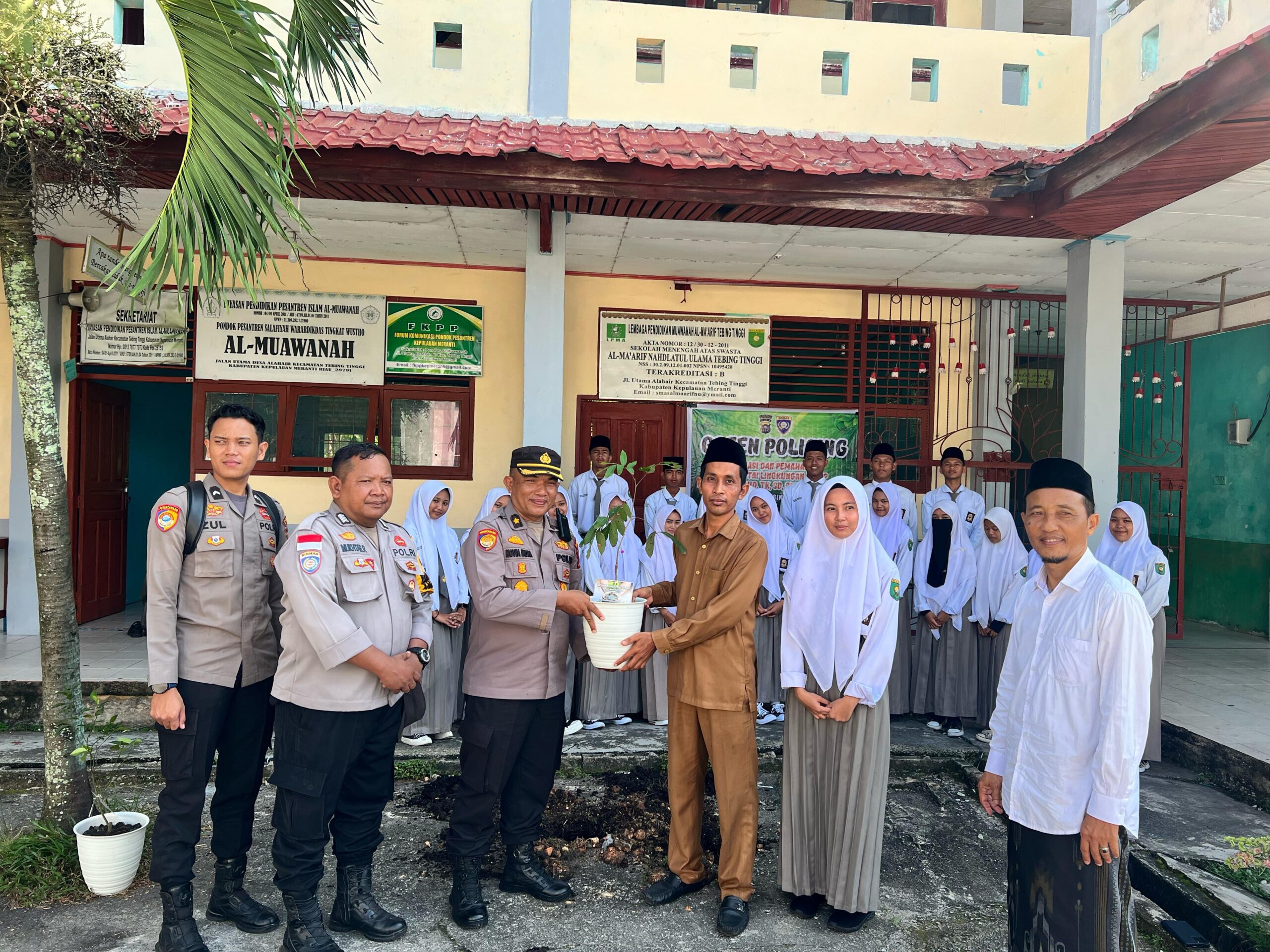 Tempat lain secara serentak juga dilaksanakan kegiatan Green Policing yaitu pdi SMA S Al Ma’arif yaitu Kabagren Polres Kep.Meranti Kompol Novia Indra SH, Bripka Mukhtarrosidi Bhabinkamtibmas Desa Alahair, Bripda Zulkhodah Bag Ren, Bripda Yudha Ba Bagren beserta pihak sekolah Ketua Yayasan Al Muawanah SMA S Al Ma’arif NU Selat Panjang Ustd NURDIN, SPdi, Kepala Sekolah SMAS Al Ma’arif NU AFDILAH S Pd dan Siswa/i SMA.S Al Ma’arif NU Selat Panjang.
