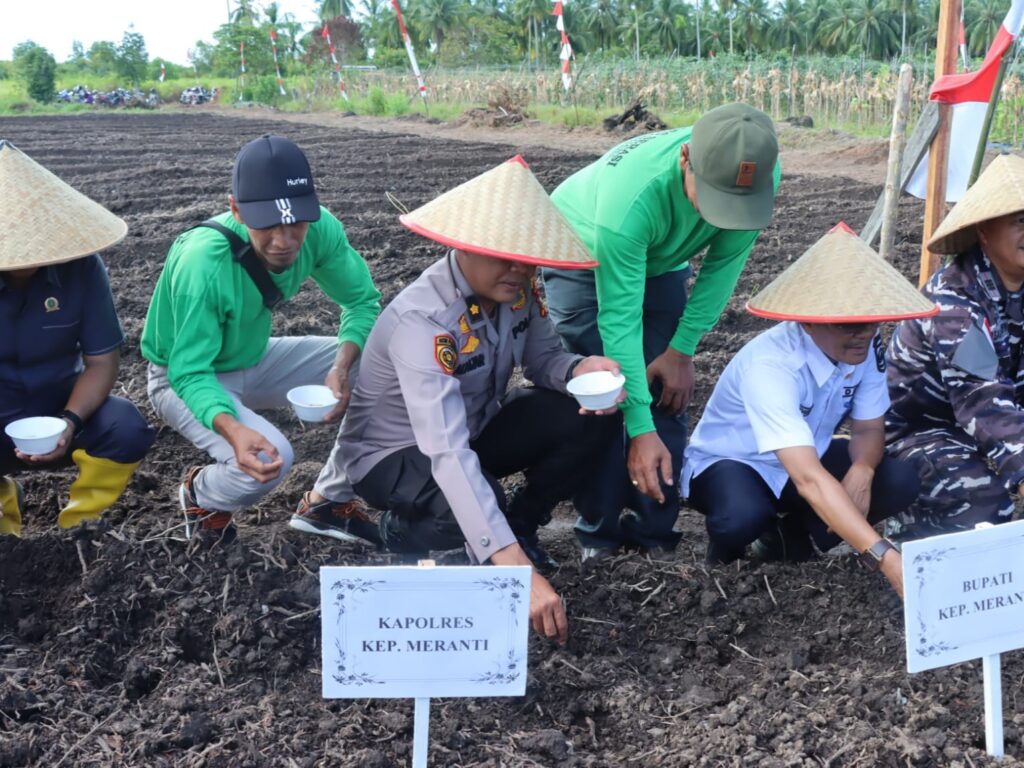 Patroli24jam. MERANTI – Polres Kepulauan Meranti melaksanakan Kegiatan Zoom Penanaman Jagung Serentak Kuartal III di Lahan Perhutanan Sosial di Lahan Milik Ketua Kelompok Tani Mantiasa Maju Bapak Zulqodri, Jalan Pusara Desa Mantiasa Kecamatan Tebing Tinggi Barat, Rabu (09/07/25).