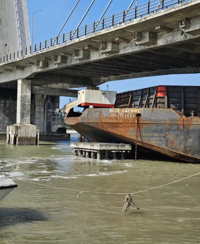 Patroli24jam – Pangkalpinang, hampir satu tahun berlalu Pasca insiden Tongkang Blue Shapire digandeng Tugboat (TB) Majestic Artic milik PT. Global Sinergi Maritim (GSM) menabrak batas Tiang Penyanggah Jembatan EMAS Air Anyir Baturusa, di bulan Juni 2025 lalu, progresnya masih tidak jelas, diduga adanya pembiaran.
