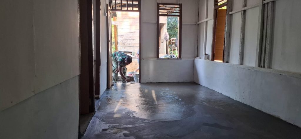 TAPTENG_Program TNI Manunggal Membangun Desa (TMMD) ke-126 Kodim 0211/TT kembali menunjukkan progres signifikan dalam meningkatkan kesejahteraan masyarakat. Salah satu kegiatan utama yaitu pembangunan Rumah Tidak Layak Huni (RTLH), kini telah memasuki tahap pengecoran lantai.