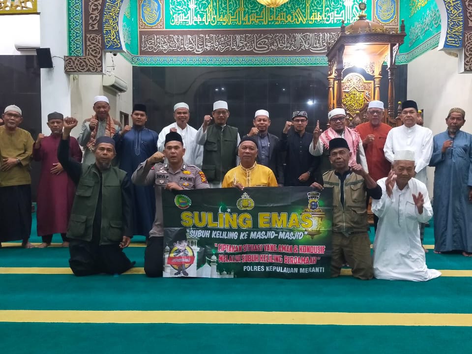 Kapolres Kepulauan Meranti, AKBP Aldi Alfa Faroqi SH SIK MH, menyampaikan bahwa melalui program Suling Emas, Polri berupaya mempererat hubungan dengan masyarakat, mengajak warga memakmurkan masjid, sekaligus memastikan situasi kamtibmas tetap aman dan kondusif.