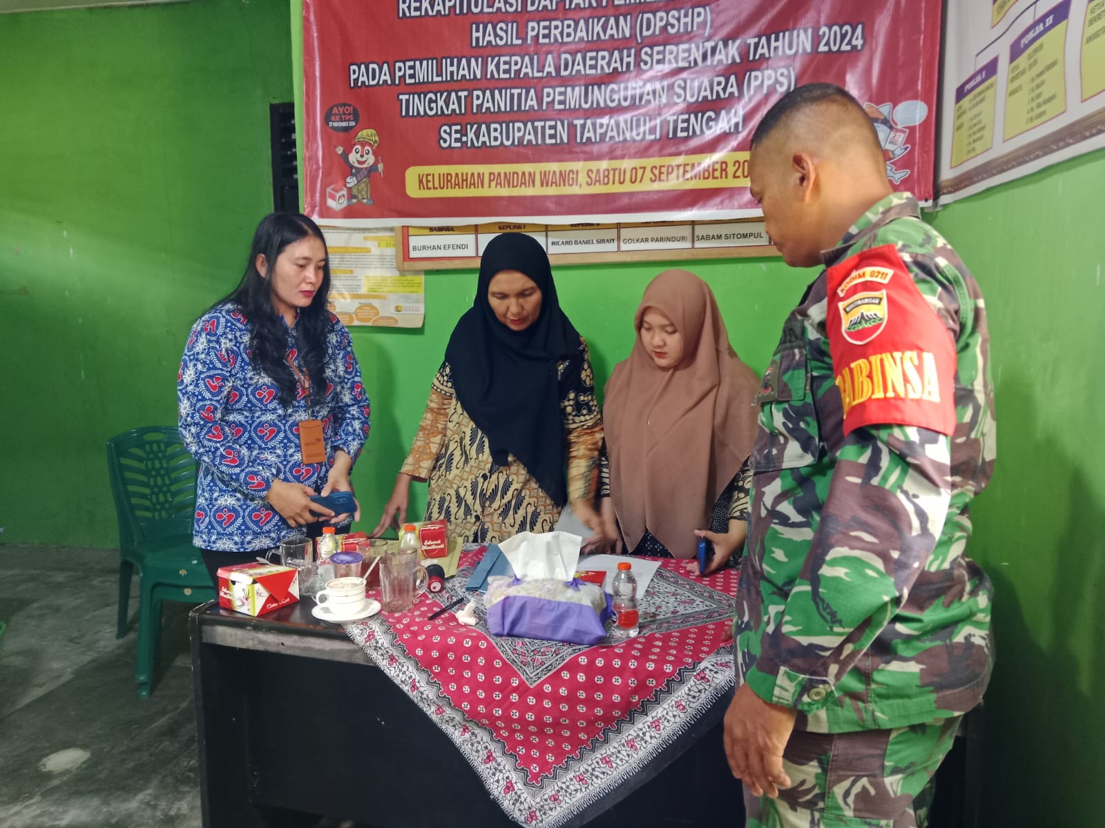 Tapteng_Babinsa Koramil 03/Pandan Serda Sarlin Sibagariang melaksanakan kegiatan rutin yaitu melaksanakan Komunikasi Sosial (Komsos) bersama perangkat Kelurahan yang berlangsung di Kantor Kelurahan Pandan Wangi, Kecamatan Pandan, Kabupaten Tapanuli Tengah, Selasa (29/04/2025).